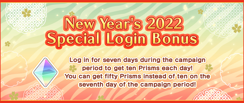 The New Year’s 2022 Campaign is here! We’ve added songs and are holding a New Year’s Step-Up Photo Shoot. We’re also selling special New Year’s sets and have a special login bonus for you!