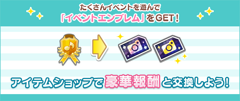 イベント達成報酬やイベント楽曲のクリアで「イベントエンブレム
