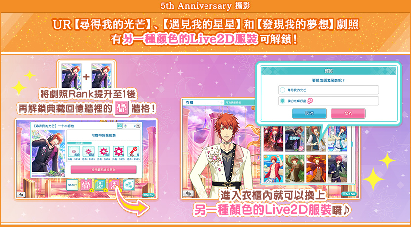 可解鎖偶像簽名及特別訊息的功能也會於UR「5th Anniversary -RAY-」系列劇照中登場!